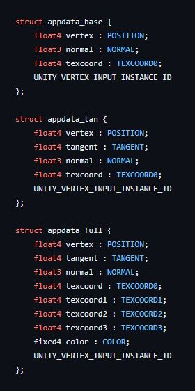그리고 궁금해서 UnityCG.cginc 파일을 찾아봤는데 아래와 같이 구조체의 구조를 확인할 수 있었다.