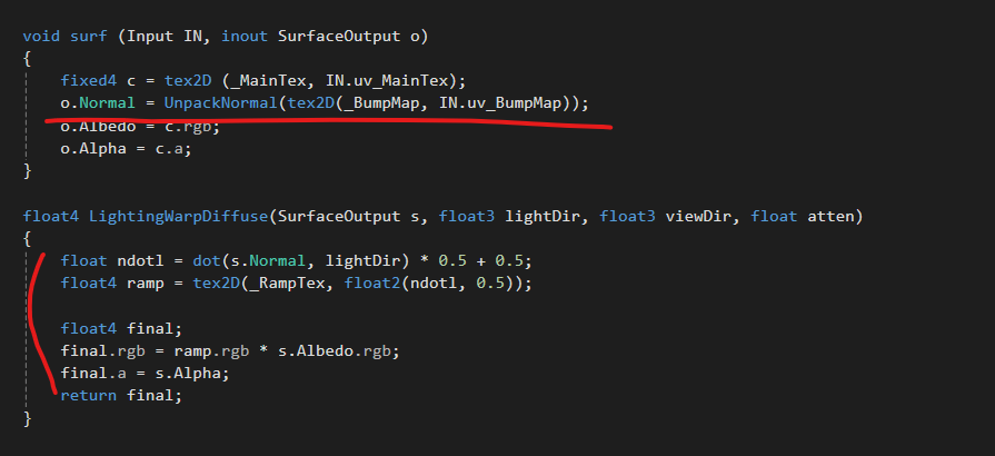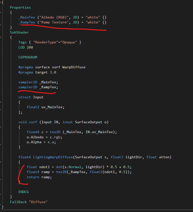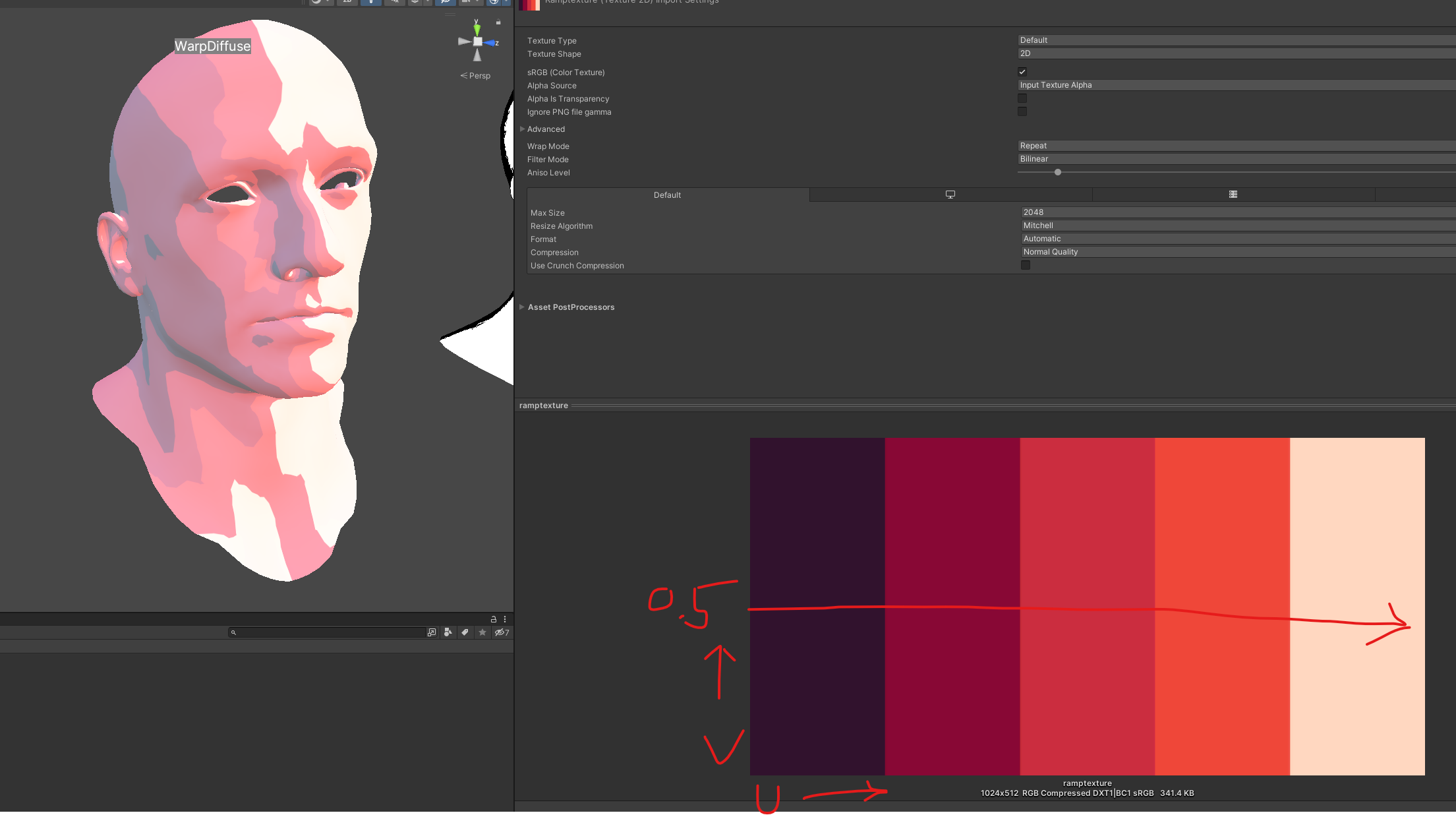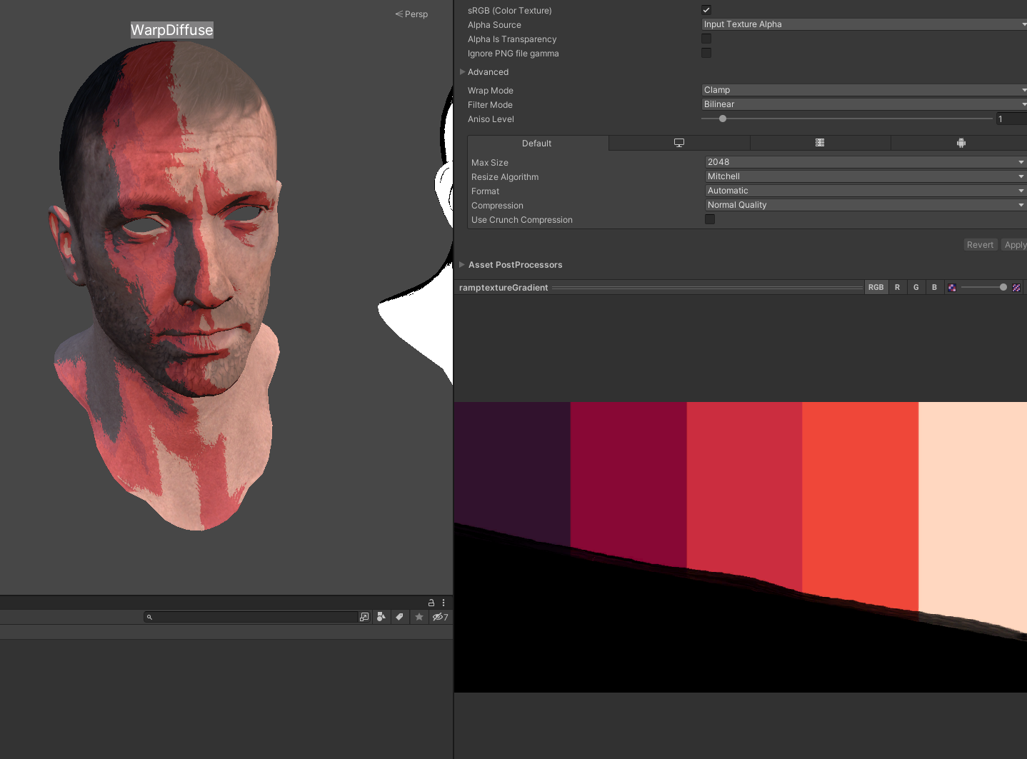 Valve 사에서 발표한 그래픽스 관련 논문에 소개된 기법이다. Warp Diffuse 혹은 Ramp Texture라고도 불린다. 이 기법은 빛 계산으로 쓰이는 공식인 노말과 라이트 벡터의 내적을 uv에 대응하는 기술이다.
