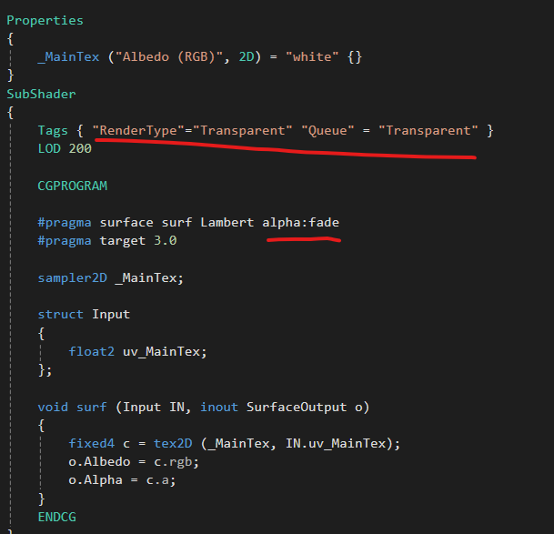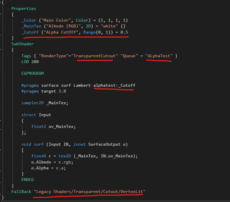 (2) TransparentCutout 키워드와 AlphaTest 렌더링 순서를 정해준다.