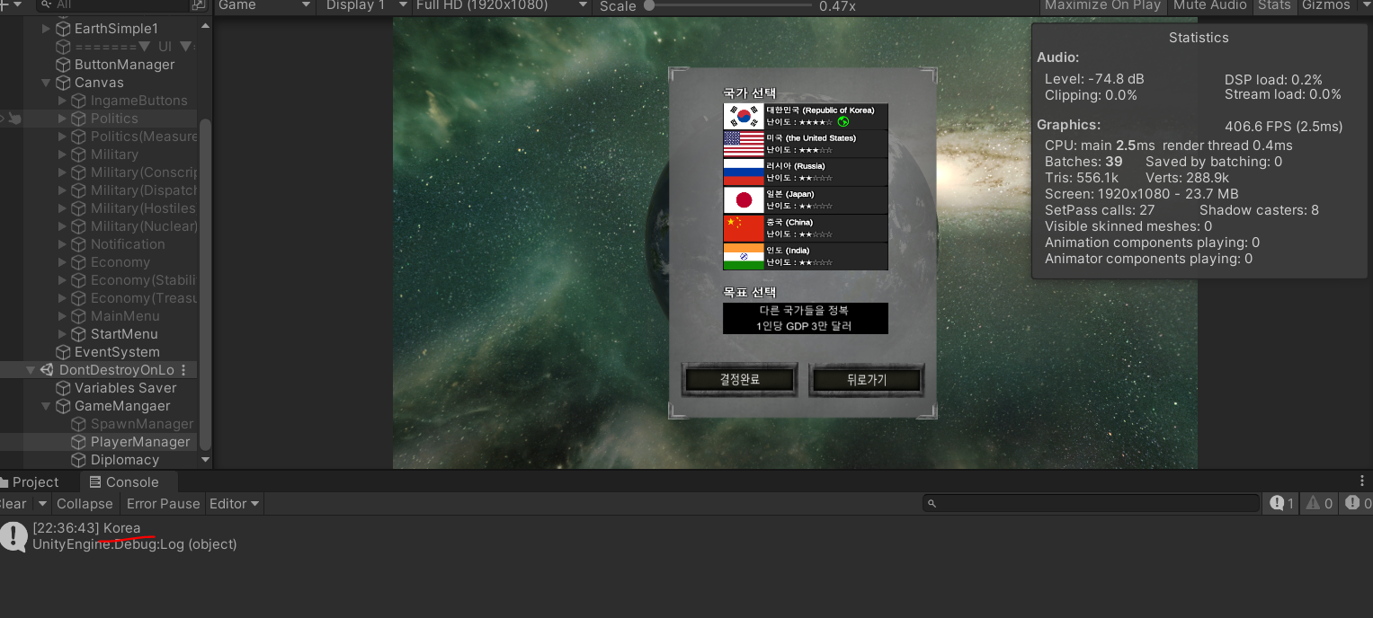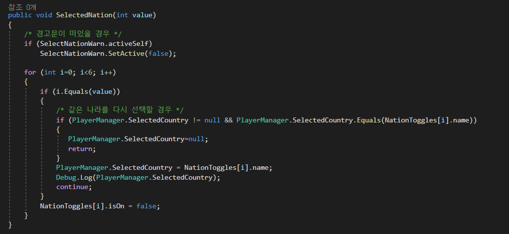 ▲ 나라 선택 시 저장되어있던 정보에 따라서 필요한 경우에 딱 한 번만 플레이어의 나라를 찾아 등록한다.