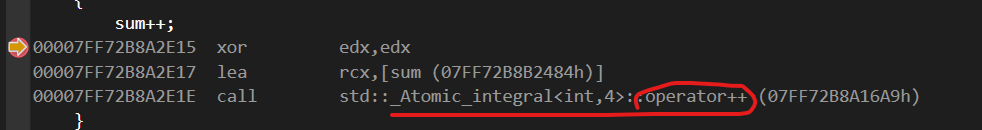 일반 전역변수를 가져다 사용하는 것과 달리 전역 변수를 메모리에서 가져오자마자 std::atomic의 operator++를 실행해주는데 그 내부에는 lock이 된 상태로 실행하다보니 다른 스레드가 연산 과정 중 공유 변수를 사용하는 경우는 없게 되는 것이다.