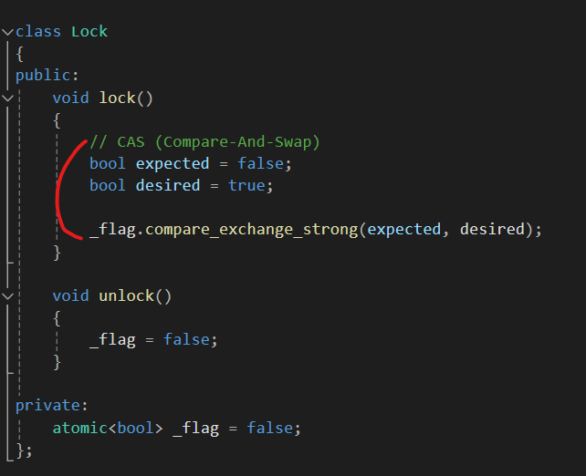 이러한 상황을 해결하기 위해 앞서 공부한 RAII패턴을 사용하여 동시 접근을 제어하여 락을 안전하게 얻을 수도 있지만, RAII는 보통 메모리 리소스와 같은 자원을 안전하게 관리하는데 사용되고, 위와 같이 다중 스레드 환경에서 데이터의 일관성을 유지하는 목적이 짙다면 동기화를 위해 CAS(Cmpare-And-Swap) 연산을 활용한다고 한다.