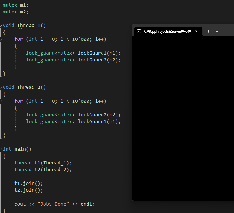 교착 상태라고도 불린다. 두 스레드가 서로 차지하고 있는 것을 원할 때, 혹은 특정 상황에서 무한 루프에 빠지게 되는데 이러한 것을 데드락이라고 한다.