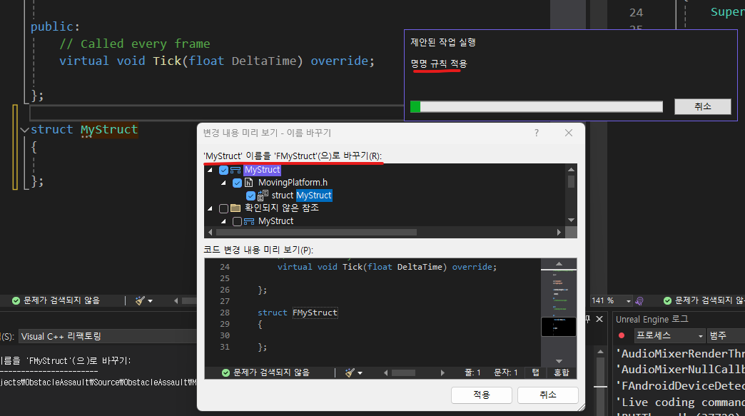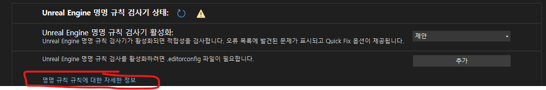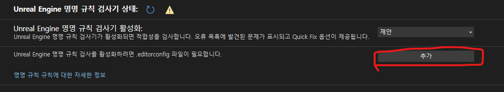 6. 다시 Unreal 통합구성으로 돌아와서 체크해주면 올바르게 명명 규칙 검사기가 작동한다는 것을 알 수 있다.