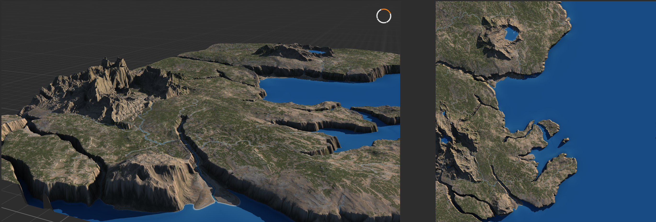 이제 바다, 호수 추가 이후 Zone A, B, C, D, E 순차적으로 건물과 포장도로 등 작업 예정.