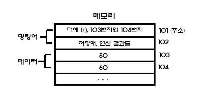 · 이러한 명령어와 데이터들은 모두 컴퓨터가 읽을 수 있는 '0'과 '1'로 기록되어 있다.