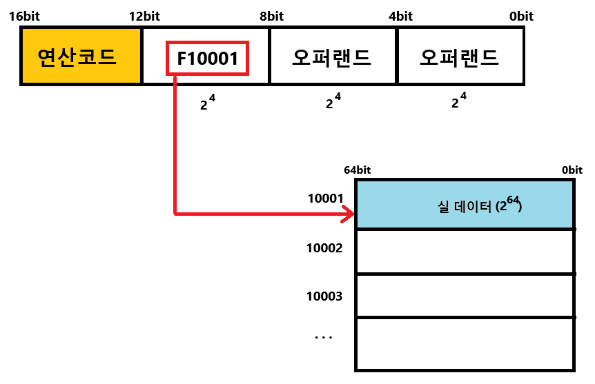 하지만, 오퍼랜드에 직접적으로 데이터를 명시하지 않고 메모리 주소를 지정할 수 있다면? 그리고 그 메모리 한 칸이 64비트의 정보를 표현할 수 있다면?