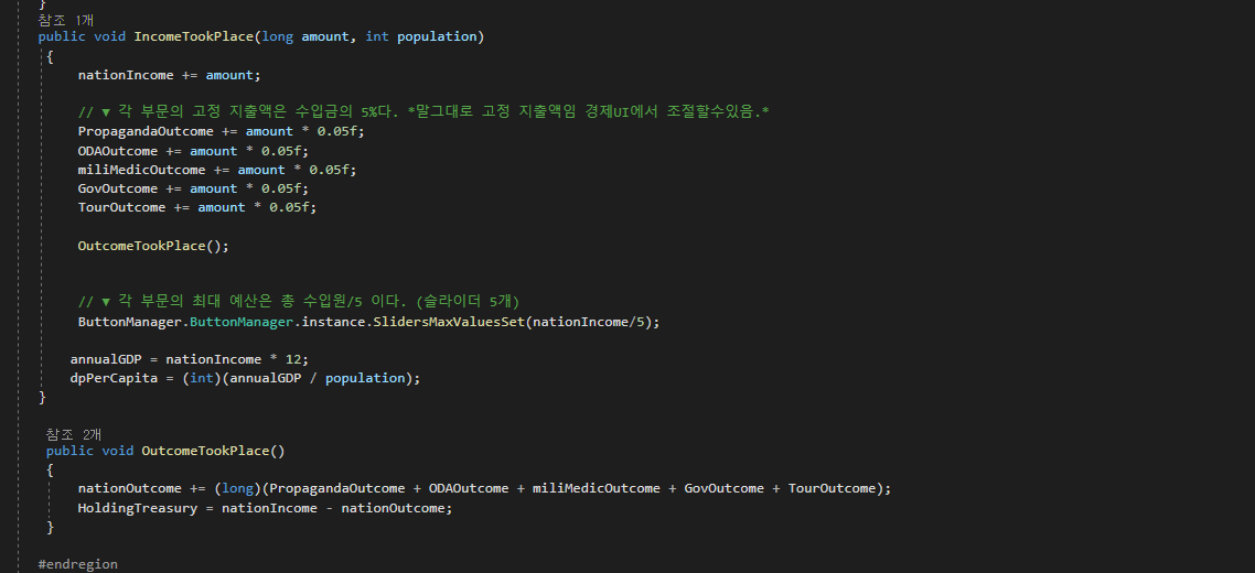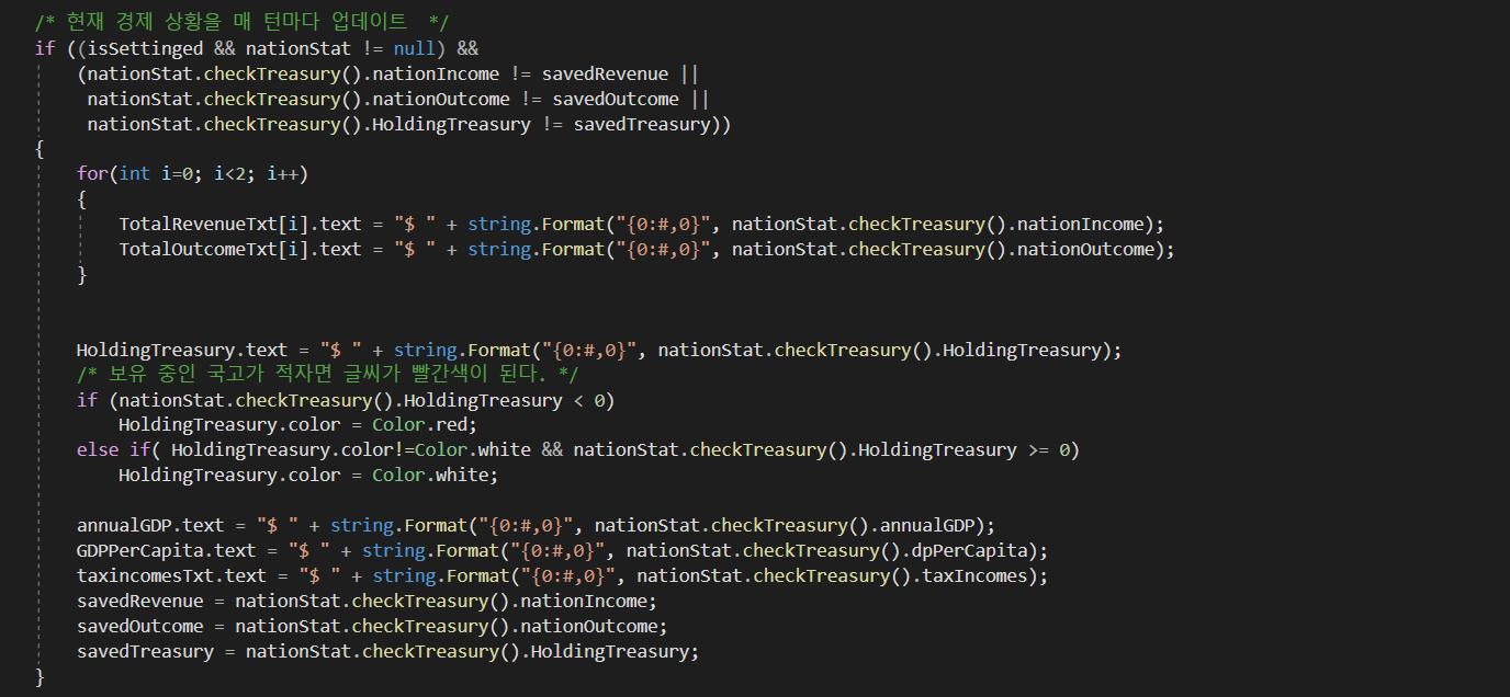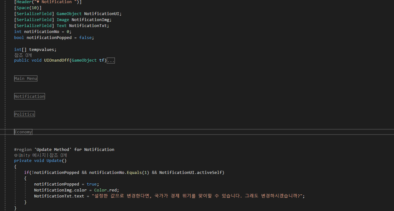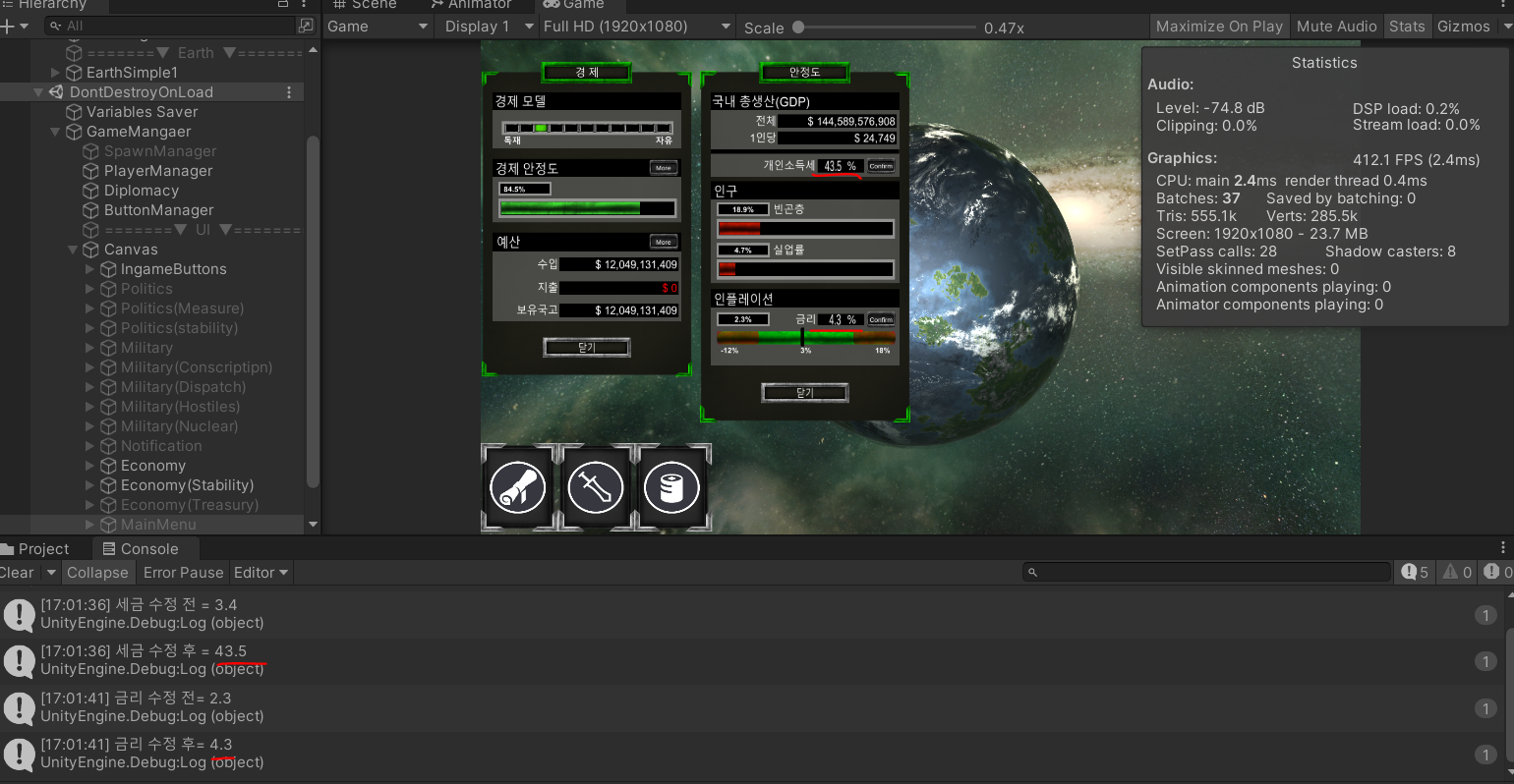 4. 경제-> 예산 UI에 있는 5개 경제 부문의 예산 비율들을 슬라이더로 조절 할 수 있고, 예상 지출액이 특정 금액보다(비율) 높다면 경고가 뜨게한다.