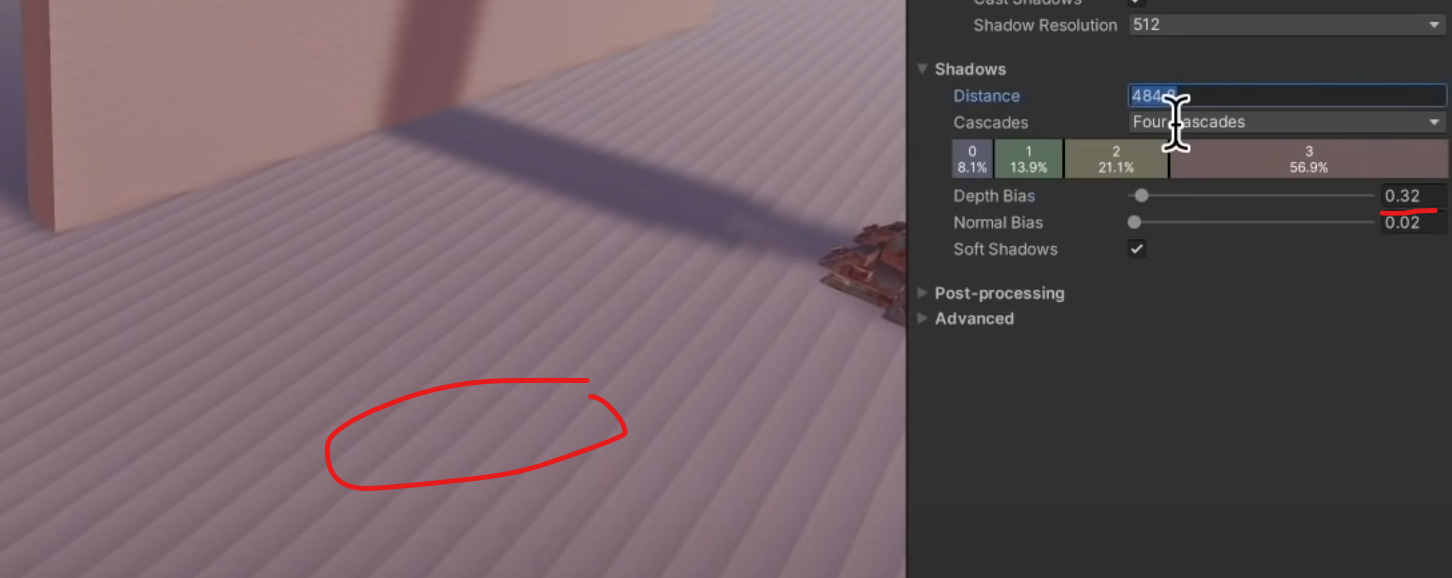 3. Depth Bias와 Normal Bias가 있는데 기본적으로 섀도우 애크니를 없애기 위한 설정들이다.