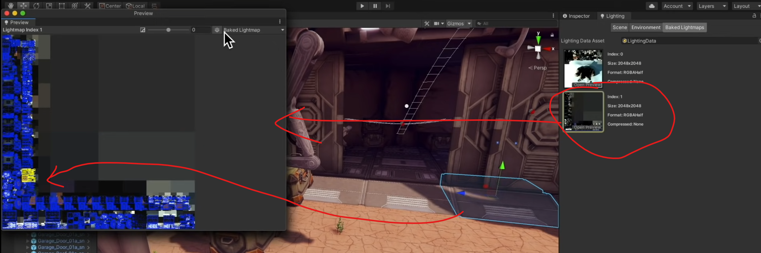 2. 예시 이미지처럼 선택한 오브젝트의 라이트맵을 확인할 수 있는데 UV 자동 생성 후 겹치는 부분 혹은 디테일이 떨어지는 부분들은 수동으로 편집하는 것을 권한다.