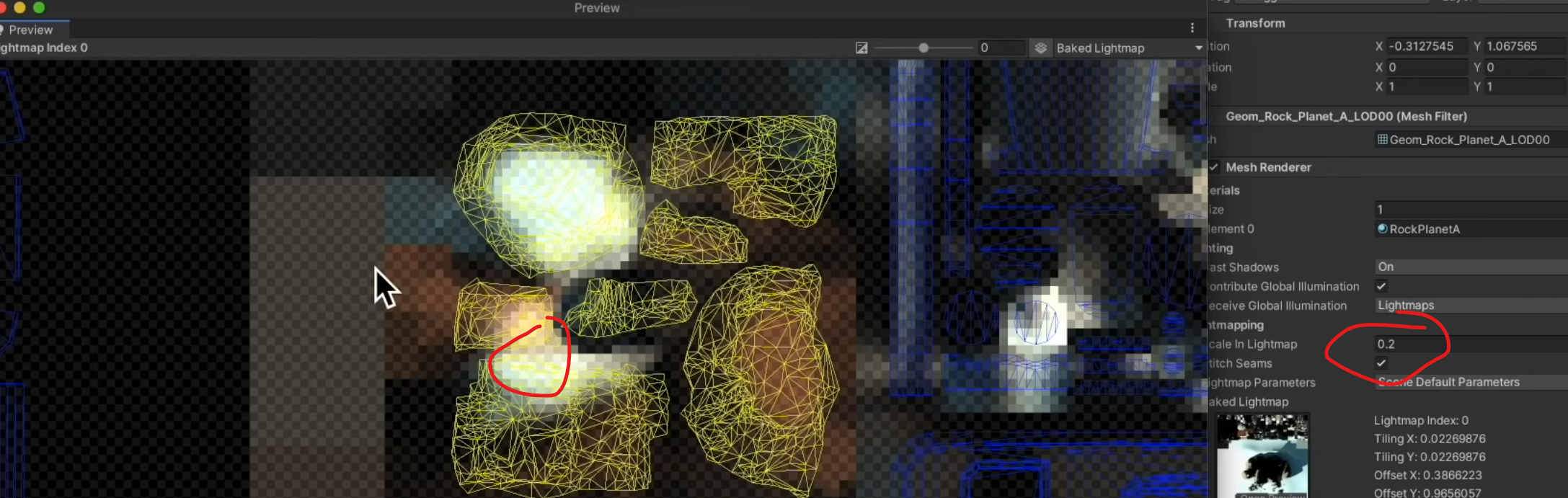 4. 겹치는 경우에는 Mesh Renderder의 Scale In Lightmap의 영향도 받을 수 있다.