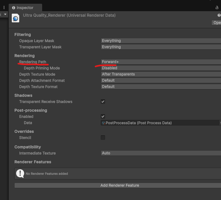 ▼ 설정 가능 위치 (URP Asset을 생성하면 같이 추가 되는 Renderer Data에서 확인 가능)