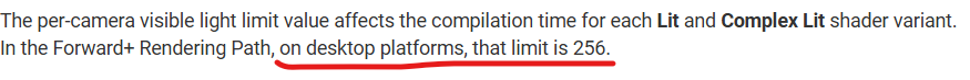 · 광원의 수가 많은 씬에서 특히 성능이 뛰어남. · 각 광원에서 고려해야 하는 오브젝트의 수를 줄여 하드웨어 리소스를 더 효율적으로 활용할 수 있음. |