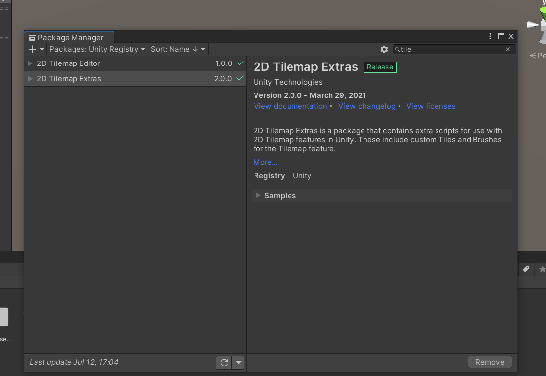 2. 그런다음 Windows -> package Manager 에서 2D Tilemap 두 개를 다운 받는다.