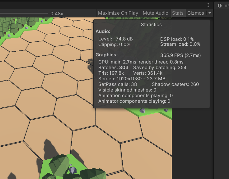 12. 혹시 모르니 Stats와 Profiler를 검사해봤는데. 360~400 사이를 왔다갔다했다. 너무 흡족스러웠다.