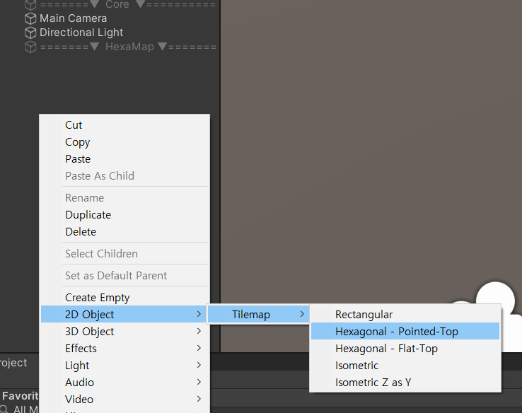 3. 하이어라르키에서 2D object 생성시 Tilemap을 생성할 수 있었다.