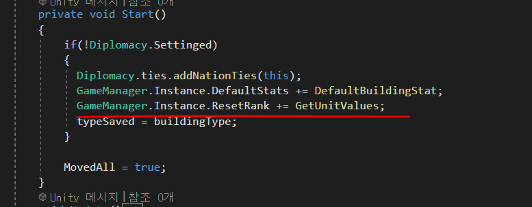 구조는 이렇다. 모든 국가들은 Start 이벤트 함수에서 게임매니저에 있는 액션에 체인을 걸어준다.