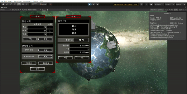 2. 국방UI에서 유닛을 구매할 수 있다. (제너릭 오브젝트 풀링 활용)