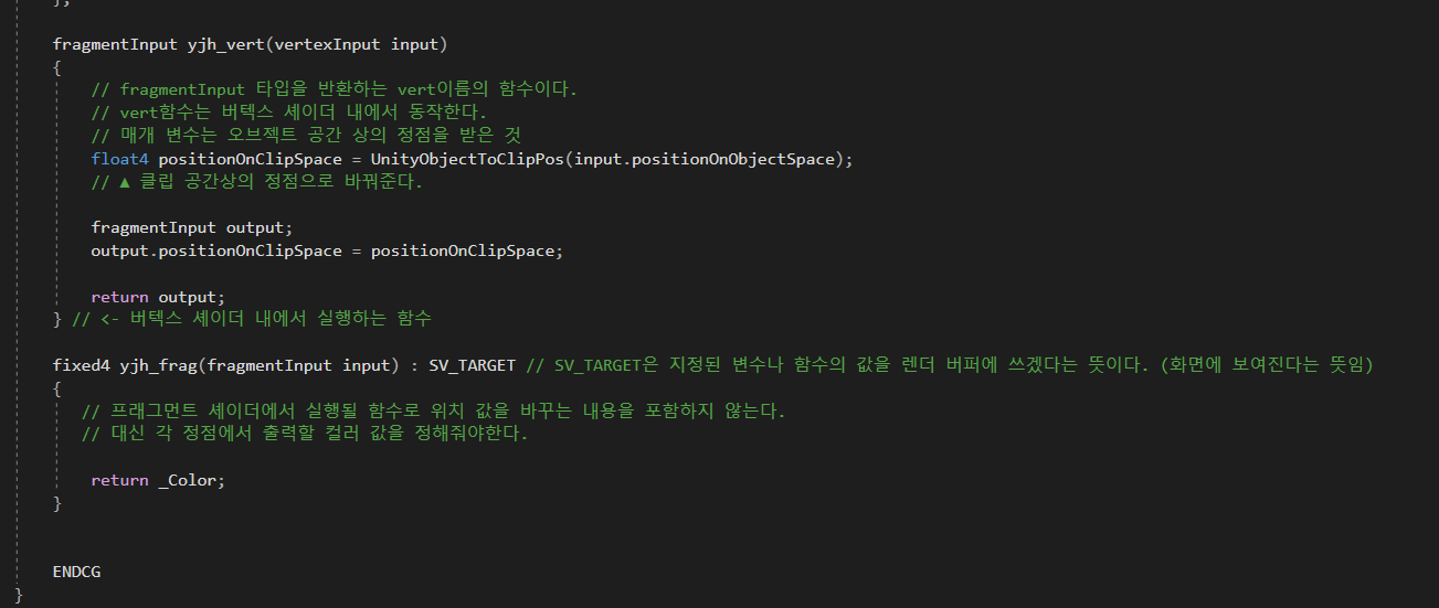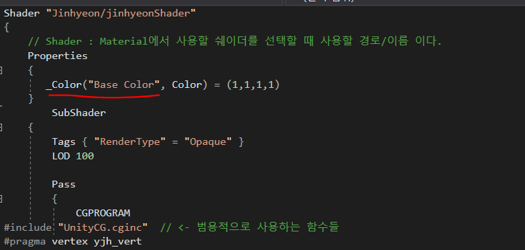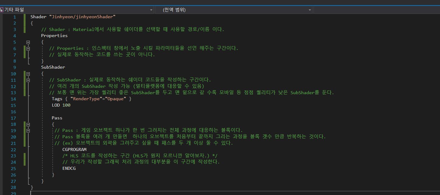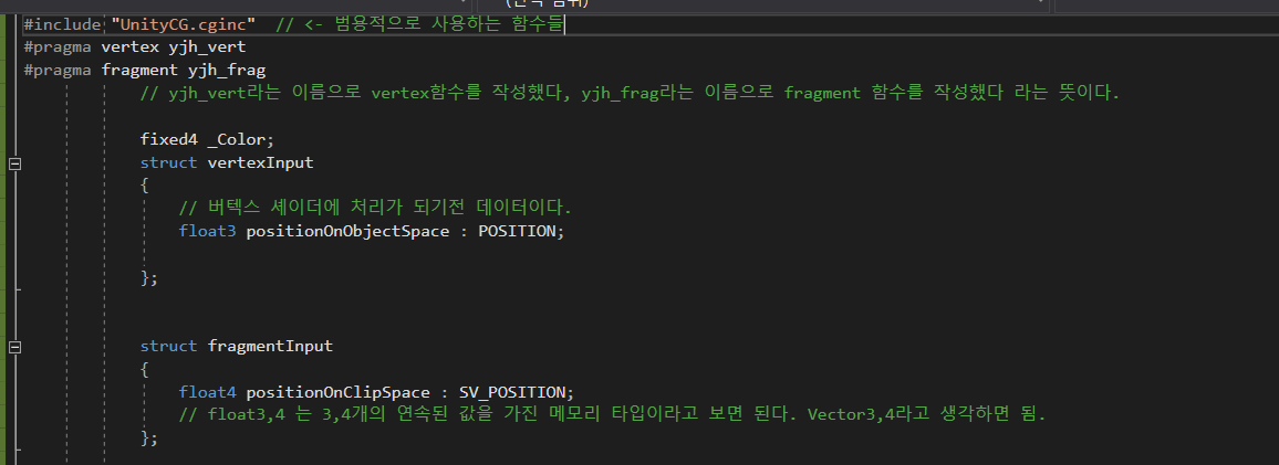 불편했던점은 아마 쉐이더는 아마 C++이 변형된 상태 로 작성되나보다 좌측 상단에 보여지는 마크도 ++를 뜻하기도하고 일단 동영상처럼 자동 완성이 안된다 색깔도 구분이 안되어있고..