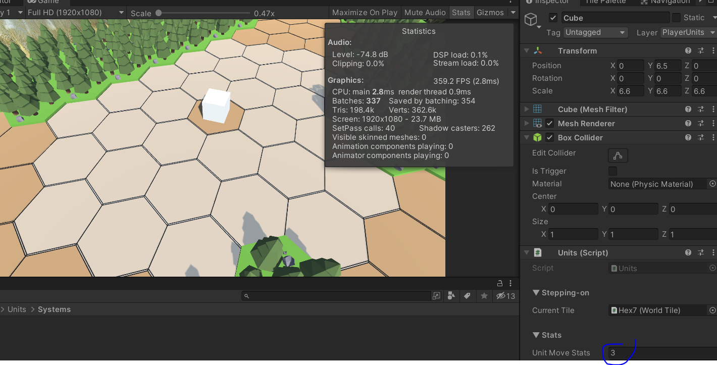 SelectManager에서 현재 선택된 유닛을 static 변수로 저장하고 UnitsGridSystem에서 활용하기 때문에