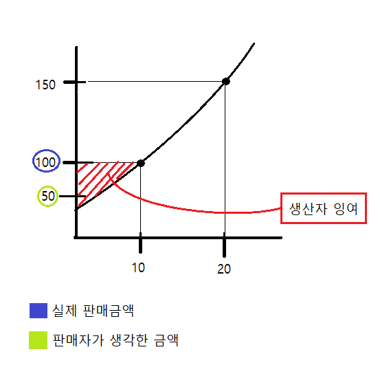 생산자가 상품을 판매할 때 받아야겠다는 금액과 실제로 수치한 금액의 차이