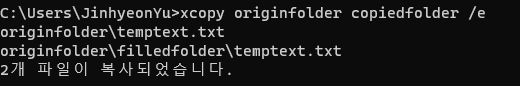 비어있는 디렉토리를 포함하여 모든 디렉토리를 복사 (ex) originfolder -> copiedfolder 복사 ![]() 2개 파일이 복사되었다고 표시되어있으나. 실제 복사된 것은 emptyfolder(빈 폴더)까지 복사가 된 것을 확인하였다. ![]() |