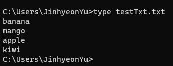 | FIND | 특정 문자열 검색 (ex) find "apple" test.txt -> apple이 있으면 apple을 출력 만약 없다면 "" 공백을 출력 ▼ 찾았을 경우 apple 출력 ![]() ▼ 못찾았을 경우 공백 출력 ![]() |
