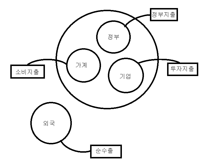 | GDP = 소비 지출 + 투자 지출 + 정부 지출 + (수출 - 수입) |