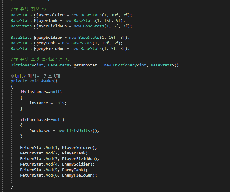 | [Day 4-1] 유닛 세분화 + 유닛 매니저 구현, 확장 메서드로 스텟 부여 (0) | 2021.07.15 |