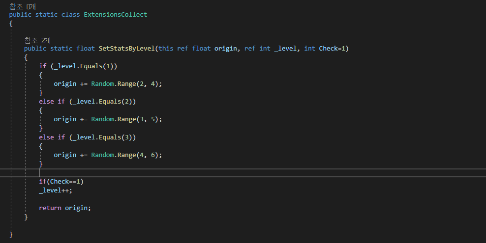 저번에 올렸던 확장메서드는 솔직히 연습 겸이라도 코드 작성하면서 스스로도 이걸 굳이 이렇게 할 필요가 있나 싶은 것이다. 그래서 저렇게 간단한 것에는 확장메서드를 쓰지 않고 그냥 if/else if로 끝내버리고 다른 것에다 쓸 생각을 하다가