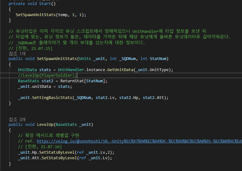그런데 Unit.cs 자체에 레벨업을 넣으면 안된다. 왜냐하면 저번 글에서 볼 수 있듯이 유닛을 구입하고 소환하는 것이